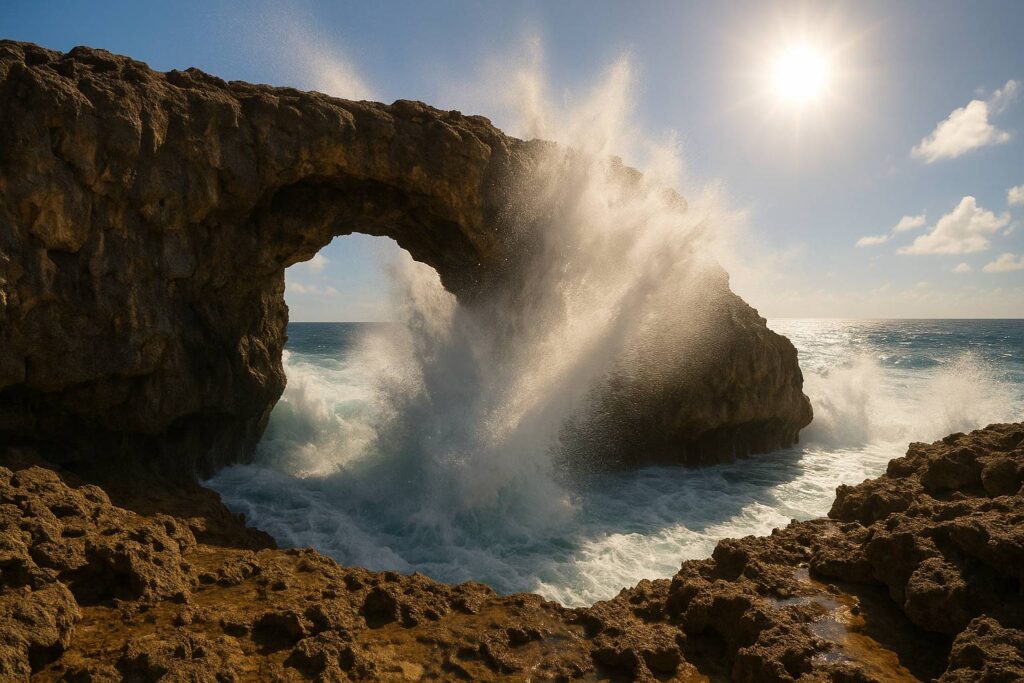Seruling Samudera itu sebenarnya suara angin yang menerobos celah-celah batu karang di ujung timur pantai. Celahnya membentuk seperti tabung vertikal, jadi pas ombak besar datang dan anginnya kenceng, keluar suara melengking khas. Bukan suara seruling bambu lembut, tapi lebih kayak whistle tajam yang bisa didenger sampe ke tengah pantai.