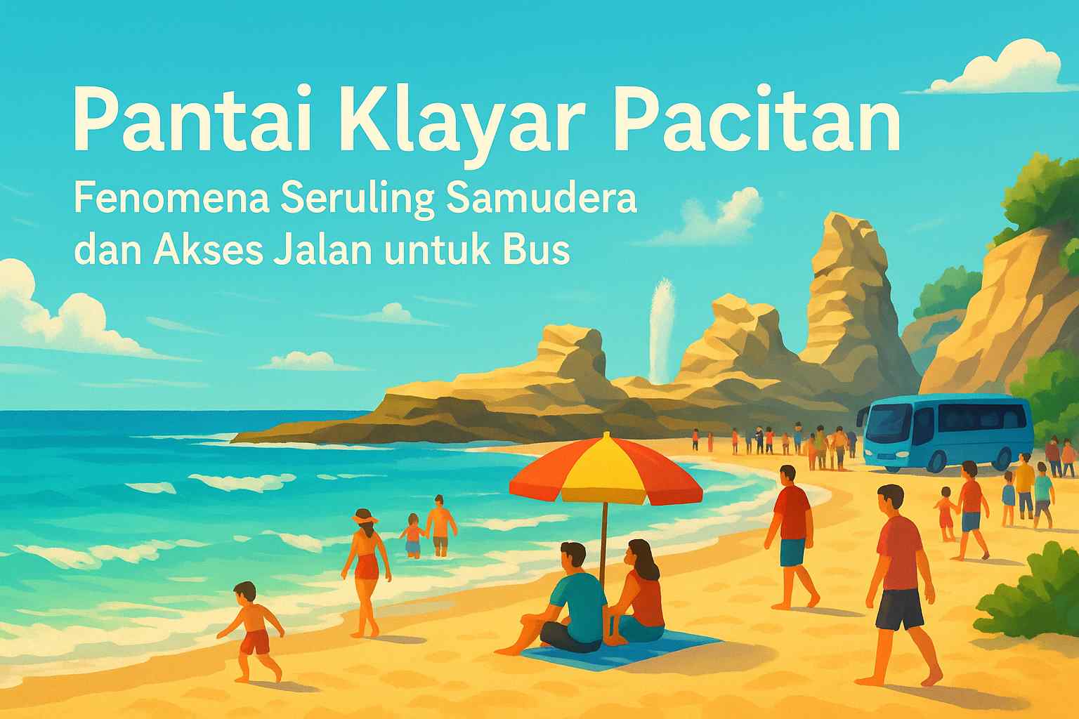 Pacitan memang surganya pantai-pantai cantik di Jawa Timur. Tapi kalau kamu pernah coba explore pantai-pantai di sana, pasti tahu rasanya deg-degan lihat jalanan sempit dan berkelok. Nah, Pantai Klayar ini satu di antara yang paling ikonik, tapi sekaligus bikin banyak traveler ragu: apakah bus bisa sampai sana? Dan yang paling ditunggu, tentu saja fenomena Seruling Samudera yang katanya bikin merinding.
