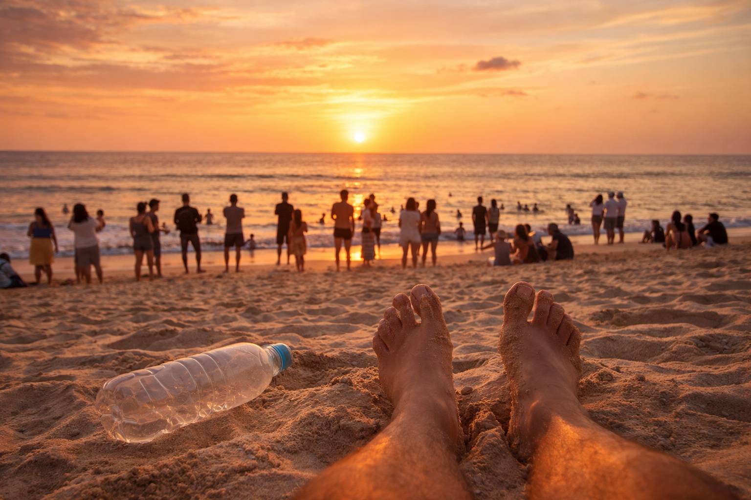 Kalau jalan sedikit ke samping, ke area yang sepi, situasinya beda. Sampah plastik terlihat lebih banyak. Ini bukan salah pengelola aja, tapi juga kesadaran pengunjung. Banyak yang masih buang sampah sembarangan. Gw pernah lihat ibu-nya marahin anaknya karena buang sampah di pasir, tapi di sisi lain ada bapak-bapak yang asal lempar botol ke laut. Kontras banget.