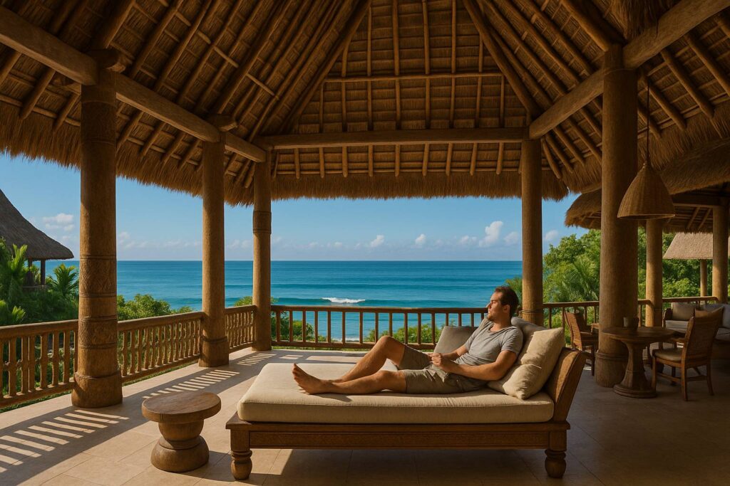 3. Spa di pavilion tepi laut—ini yang paling worth it. Suara ombak jadi backsound terapi.