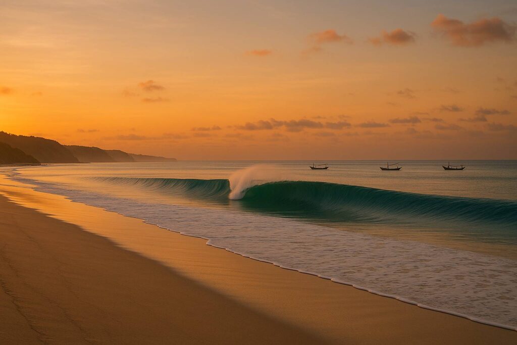 Pantai ini nggak kayak pantai biasa. Luasnya sekitar 560 hektar, dengan 2,5 kilometer garis pantai privat. Pasirnya putih lembut, airnya biru toska, dan ombaknya—ya ampun, the famous Occy’s Left—ombak legendaris yang jadi surfer mimpi-mimpi. Gue sampe sana pagi-pagi buta, sekitar jam 7 pagi. Suasananya masih sepi, cuma suara ombak dan burung-burung.