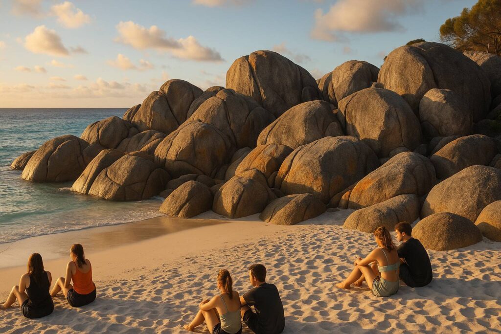 Spot lainnya adalah di ujung pantai, dekat perbatasan dengan Tanjung Kelayang. Naik ke batu granit tinggi-tinggi di situ, kamu bisa dapetin view 360 derajat yang bikin speechless. Sunset dari sana? Chef’s kiss.
