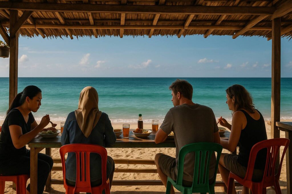 Yang paling aku suka: suasananya masih autentik. Warga lokal masih nangkring di warung kecil, nawarin ikan segar tangkapan hari itu. Nggak ada mall mini atau gedung tinggi yang mengganggu view. Cuma pohon kelapa, angin, dan kamu.