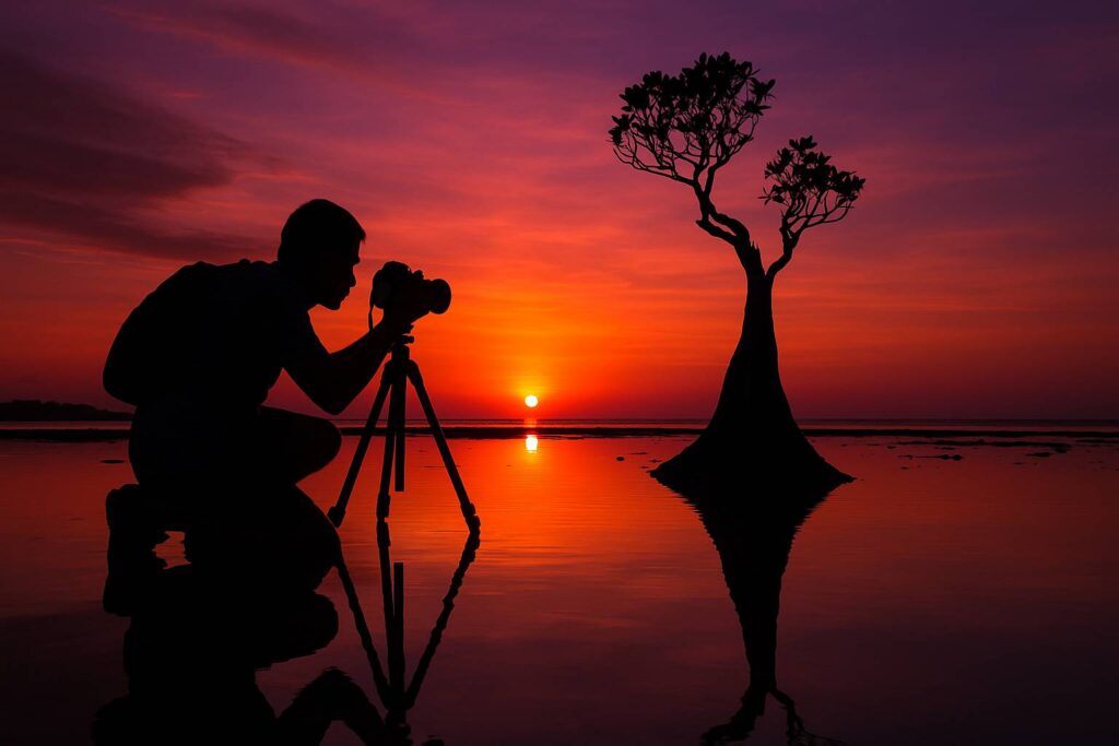 Ini momen money shot. Langit mulai oranye, siluet pohon jadi hitam pekat kontras. Tapi hati-hati, cahaya berubah cepet banget. Dalam 5 menit bisa beda 2 stop exposure. Kamu harus siap reshoot.